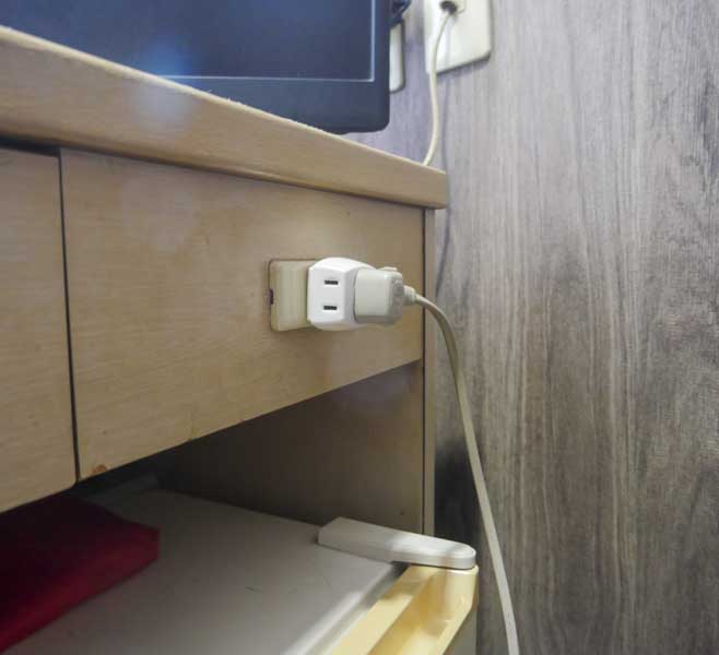 插座配置也很貼心,書桌旁與床頭皆有,使用電腦與充手機都方便。