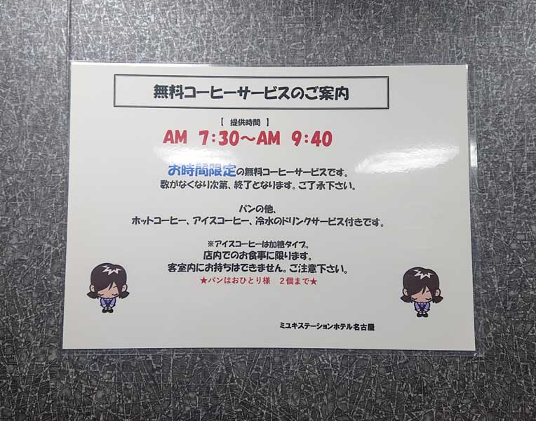 唯一比較需要注意的是,他們不接受早上十一點前的行李寄放,若像我一樣是一大早就到名古屋,得先想辦法去找地方暫放行李,我當下是想到得拖去名古屋車站寄放,不過晚上還得再拖回來,當下一個頭兩個大,幸好我搭乘的 VIP Liner 夜巴在名古屋是點可以寄放行李的,且這個點還是在旅館的後面,才算順利解決這個小困擾,不用拖去車站再拖回來,由衷感謝神明的庇佑。