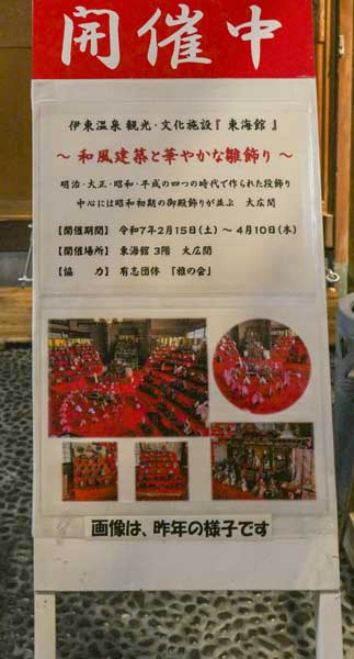我這次造訪東海館,最幸運的一件事,正是剛好遇上每年春季固定舉辦的 女兒節雛人形展(雛祭り)。東海館本身是伊東市重要的文化資產與展示空間,因此長年結合在地節慶文化,策劃季節性主題展覽,而女兒節雛人形展,正是其中最具代表性的活動之一。