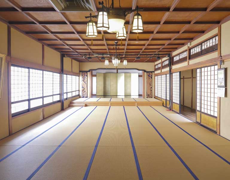 三樓則是約一百二十畳的大廣間,過去主要用於宴席、表演與大型活動,高挑的天花板與粗壯梁木,讓空間顯得格外開闊;白天造訪時氣勢十足,而在夜間柔和燈光映照下,則多了一份老屋特有的靜謐感。由於這裡同時也是雛娃娃展的展出場地,偶爾會在角落設置模擬人偶,若是在光線不足的時間前來,確實會讓人稍微起雞皮疙瘩,莫名想起很久之前去金門參觀戰備坑道也遇到類似的事情,因為沒啥人越走越害怕,到後面只差沒用跑的逃出坑道。