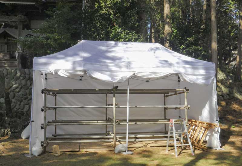 跟神明打完招呼後,我就在神社境內走走看看,神社本身並不是很大,大約十幾分鐘就能逛完,只是境內一角落有一座白色帳棚,看起來像是夜間用來存放雛人偶的臨時住所,只是這個帳篷沒有很大,有點好奇真的能把 118 階上的娃娃們都收放在其中嗎?