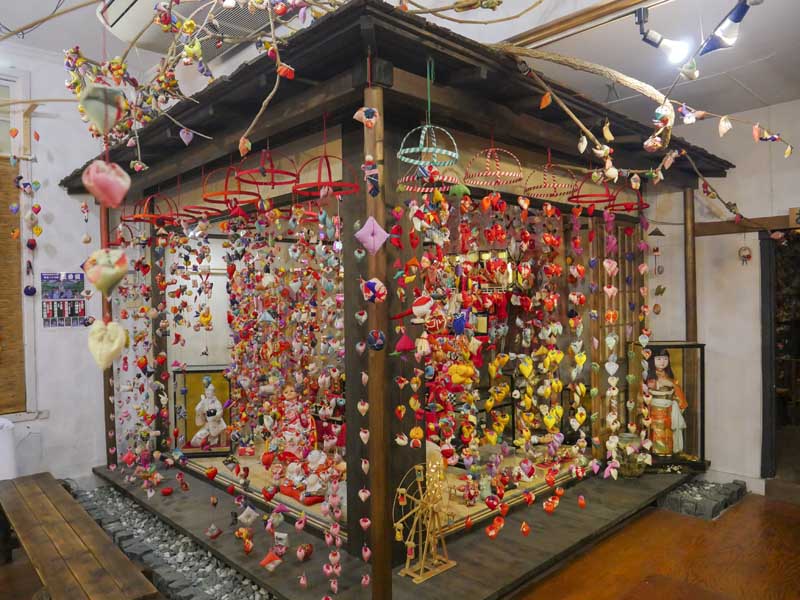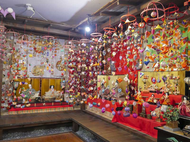 館內最經典的就是是角落那間以和式空間,四周被雛吊飾環繞,裏頭擺放的雛壇,從外頭望去,宛如以垂飾為簾,將雛壇包圍起來。