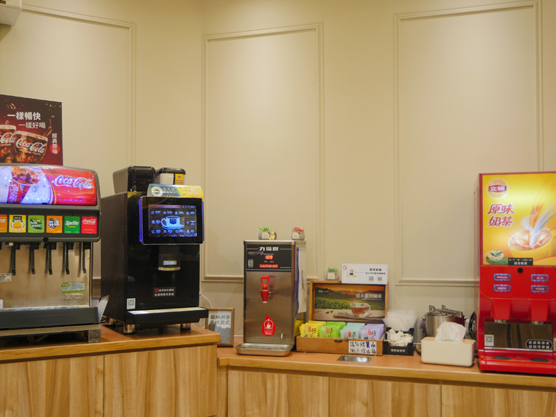 熱飲部分就蠻穩定的,畢竟機器都買了,咖啡機裡常見的美式、拿鐵、鴛鴦、可可等等都有,另一台奶茶機中,我最愛的就是杏仁茶,杏仁味道夠,唯一缺是熱的,所以都會加冰塊降溫。至於汽水類的,因為有點普通,基本上就沒碰了。