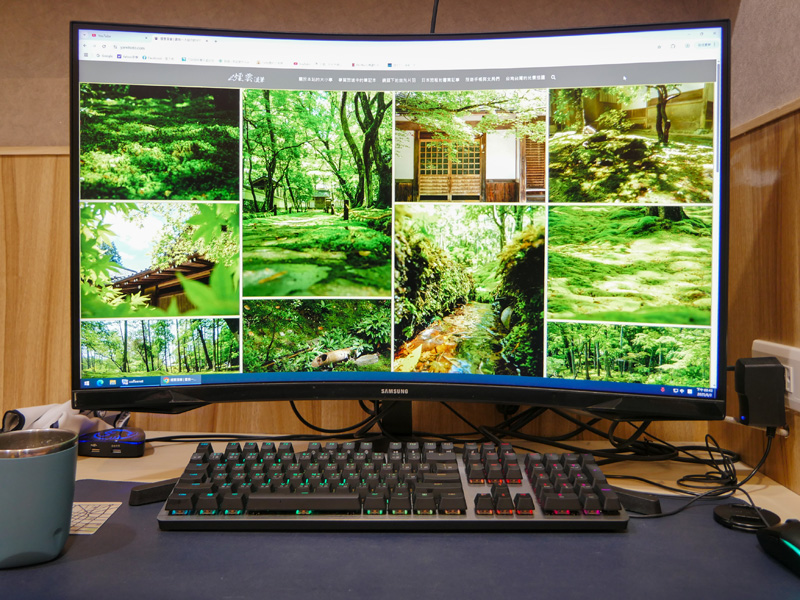 電腦區域是配有曲面螢幕與機械鍵盤,對我這種平時沒有這類設備的人來說,是難得的體驗。曲面螢幕的沉浸感比想像中自然,不會有壓迫感,很久以前待的某家公司使用的大螢幕跟保國衛家的差不多,甚至更大,然我每每當我坐在電腦桌前使用,就能直觀感受到來自螢幕強烈的壓迫感,也因此我以為只要距離不夠遠,所有大型螢幕都會有同樣問題,後來在買新螢幕時,索性乾脆不往大螢幕方向看去,免得花錢找罪受。