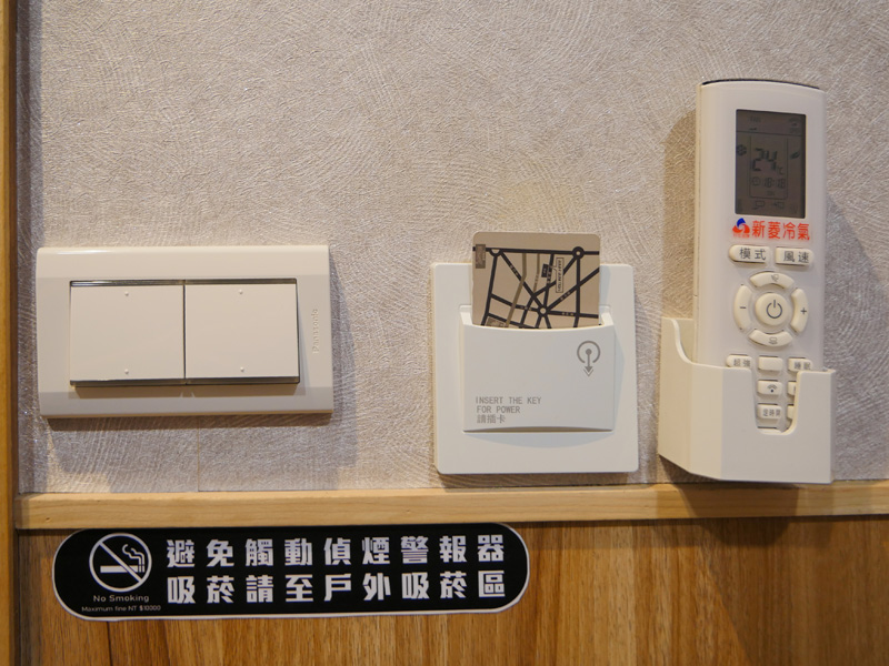 獨立空間包入住時需要提供有效的個人證件,然後會多付 100 元作為房卡的押金,房卡弄丟的話是要賠錢的,所以請小心房卡。燈無須靠房卡啟動,但冷氣需要,且房卡同時也是出入必備,這就產生一個問題,要出去一定要房卡,但一拿走房卡,冷氣就關閉了,於是就變成要一直重覆開開關關冷氣,如果很常去外頭拿飲料的話。這點對怕熱的人可能有點困擾,我後來乾脆調到最低溫讓房間先降溫,再關掉依靠餘溫維持。