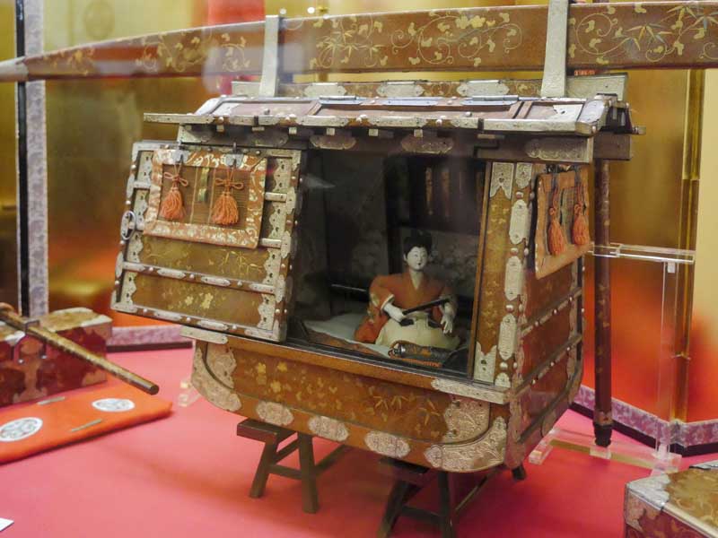 對大名家而言,這樣的雛人形並不只是女兒節時的節慶裝飾。京都國立博物館的解說提到,大名家姬君的雛飾中,常會搭配與婚禮道具相同技法製作的豪華雛道具,幾乎可說是婚禮器物的縮小版,從此可見江戶時代的雛人形往往與姬君的成長與婚姻密切相關。特別是有職雛與雛道具,常作為婚禮調度的一部分陪伴女性進入夫家,當姬君嫁入大名家後,這些人形與器物也隨之進入新的生活空間,成為象徵身份與教養的重要物件,換言之,雛人形本身既是一種節慶文化,也是一種社會制度的教育媒介。