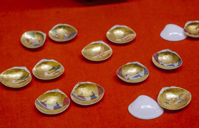 與婚禮調度相對應的,則是具有象徵意義的文化器物。其中最具代表性的便是蛤殼遊戲「貝合」。貝合利用蛤殼內外殼只能互相對應的特性,象徵婚姻的唯一性與不可分離性。在平安與鎌倉時代,貝合原本是貴族女性的遊戲,後來逐漸發展為具有文化象徵的禮儀物件。