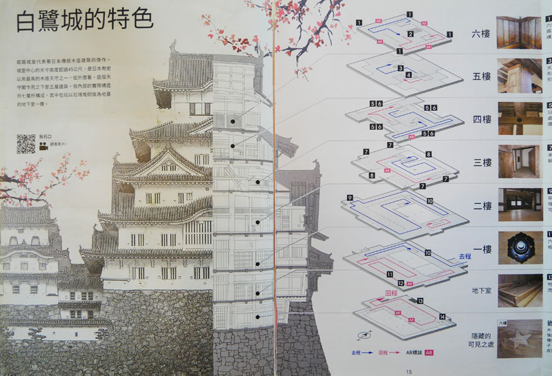走完一圈,真實感受到為什麼姬路城這麼受歡迎了,它真的保留了許多了戰國末至江戶初期軍事建築的格局,城內處處可見為實戰而生的細節,尤其要將上千名士兵,武器調度與防守動線緊密銜接,形成一套高效率的防衛系統,這在很多城堡是很難看到這麼多的,特別是很多天守閣的重蓋,也只是將外表蓋完去,而內在的這些為戰爭所安排的一切措施,很難且可能也沒辦法復原,姬路城真的很有代表性。