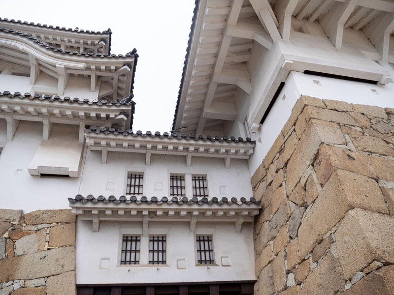 在其他現存天守中,即便有連結櫓,其規模與緊密程度也遠不及姬路城,更別說姬路城還是唯一被列為世界文化遺產的原型天守範例。這種多重防線與立體迷宮式的動線,曲折複雜的路徑外加沿途的城牆上都安排了射擊孔,本來路就彎彎繞繞,還要躲避三不五時就射來的子彈或是箭矢,真的會讓敵軍難以直搗天守本體。
