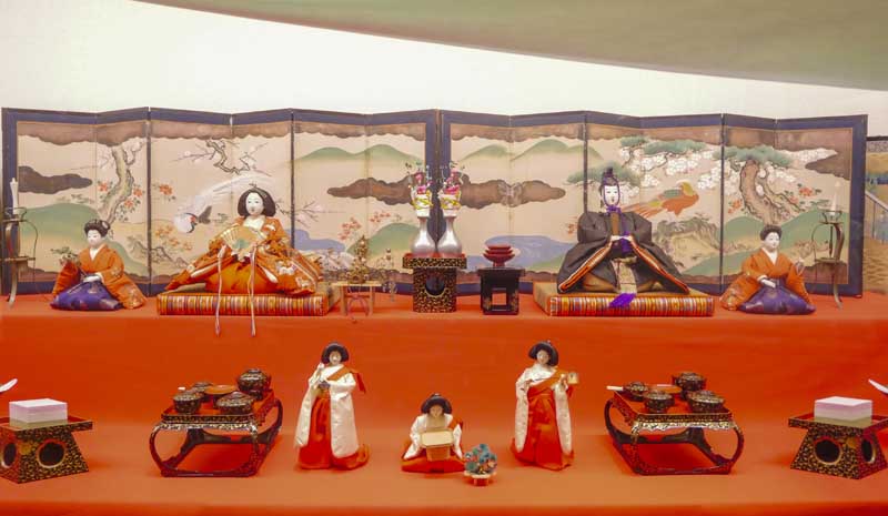 至於後來我們熟悉的五段、七段雛壇,則與江戶時代的町人社會發展密切相關。其中一個很現實的原因,就是居住空間,町人住宅相對有限,如果將大量人偶與道具全都平面鋪在房間裡,很快就會佔滿整個空間,改以垂直層層堆疊的方式,不僅更節省地方,也能在有限空間裡營造出更華麗的展示效果。於是,高雛壇逐漸成為江戶町人文化中極具代表性的雛飾形式,這種變化,並不是單純為了好看,而是與都市生活的空間條件緊密相關。