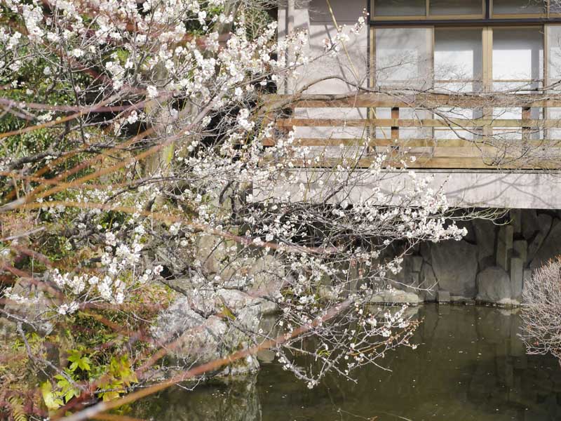沿著步道散策,會依序經過被稱為梅園五橋的五座橋梁,分別是:迎月橋、双眉橋、曙光橋、中島橋與香浮橋。這五座橋橫跨於園內小溪與水系之上,各自風格不同,有的簡潔、有的古雅,與橋旁盛開的梅花互相襯托,既是拍照熱點,所以想在橋上拍照就需要一點耐心,很難抓到無人空檔可以拍的說。