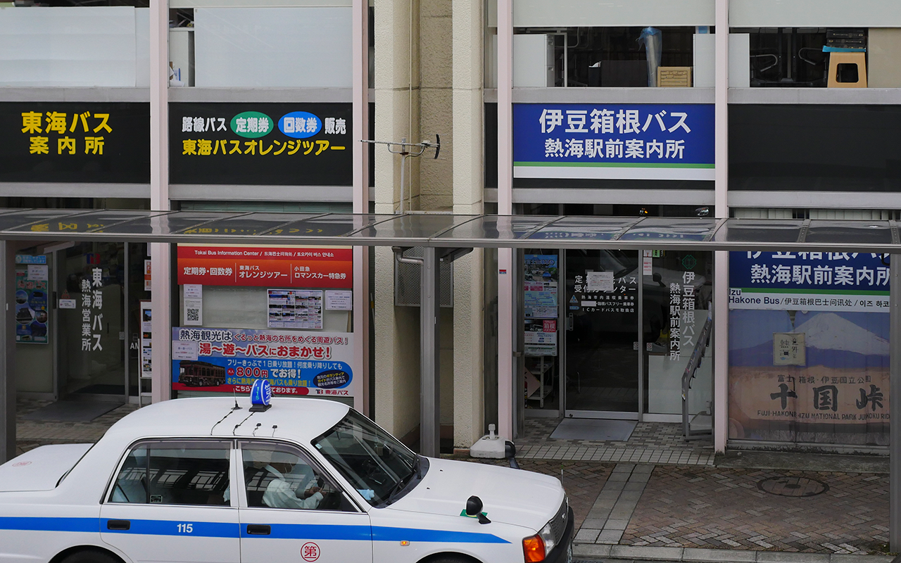 前往熱海梅園的交通方式並不複雜,主要是以公車跟 JR 為主。但需要注意的是,熱海市內觀光巴士有兩種票券:熱海 1 日券與熱海滿喫乘車券,兩者的適用範圍與搭乘路線有所不同。這次我選擇的是熱海滿喫乘車券,能搭乘東海巴士至梅園附近的指定站點,不過班次不像市區內的巴士那樣密集,是按時刻發車的,在買券時工作人員會同時將時刻表交給您,可以參考時刻表。