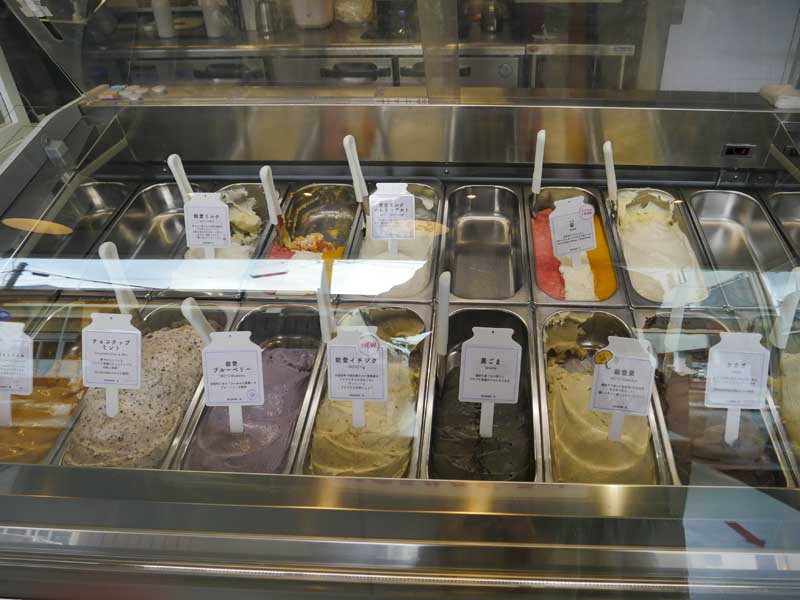 店家的冰淇淋口味選擇非常多,每一種都以能登半島的在地食材為基礎,每一項看起來都很不錯,挑選口味真的是一件困難的事情,裡面好多口味感覺都很不錯,我挑選的焦糖海鹽中的鹽巴就是來自珠洲市。