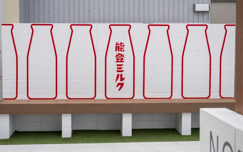 能登ミルク本店就在能登溫泉站正對面,乳白色外牆搭上開闊的大面玻璃鏡子,是棟非常醒目的存在,就算不是特別來,只是路過都很難讓人不注意的一棟建築。