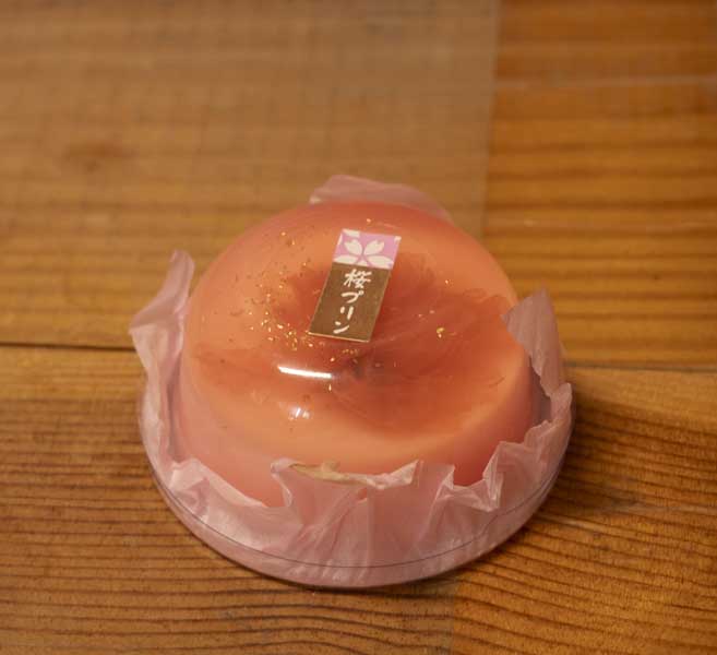 若說櫻花內餡的燒菓子已經讓我很驚訝了,那麼最讓我驚喜的,毫無疑問就是店家特別寫在門口海報得款櫻花布丁。當初會拿它,純粹是因為外觀好看,透明的果凍中封存著櫻花,本來就很討喜。