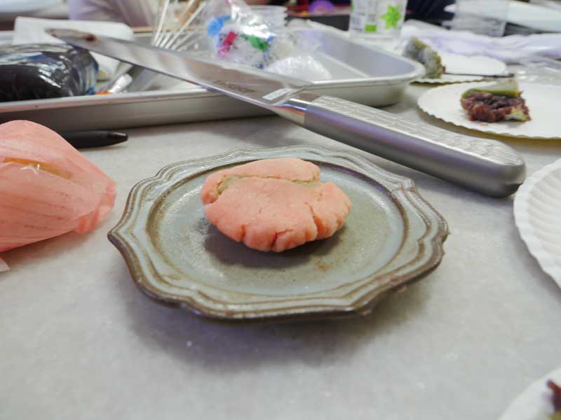順帶一說,在伊豆稻取一帶,提到柏餅,往往指的就是這種以小麥粉製成的形式,而非糯米製品,故餅皮並非見的米白色,而是呈現淡淡的黃色,口感上也相較於上新粉製作的更不黏牙,與多數人印象中的柏餅截然不同。